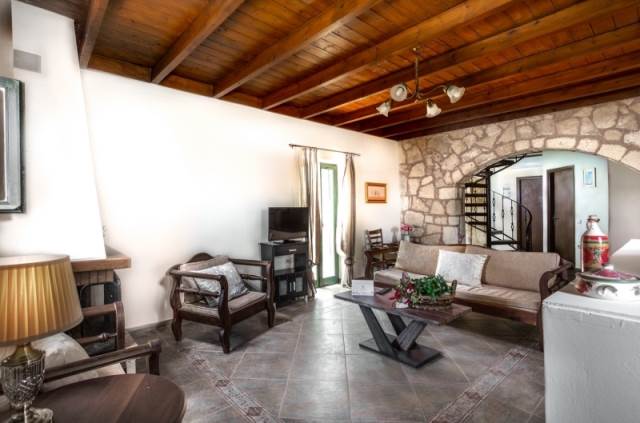 Την κατοικία την χαρακτηρίζει η παραδοσιακή αρχιτεκτονική, και οι ιδιαίτεροι διακοσμητικοί συνδυασμοί πέτρας και ξύλου που δημιουργούν ένα ιδιαίτερα φυσικό περιβάλλον. Αναπτύσσεται σε 2 επίπεδα και διαθέτει:Στο ισόγειο άνετο ενιαίο χώρο καθιστικό με τζάκι, πλήρως εξοπλισμένη κουζίνα, χωριστή τραπεζαρία, 1 υπνοδωμάτιο, 1 μπάνιο. Στον όροφο 2 άνετα υπνοδωμάτια με ιδιωτικές βεράντες που προσφέρουν εξαιρετική θέα στο βουνό και την πισίνα, 1 μπάνιο
