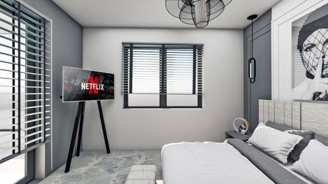 Άνετο ενιαίο χώρο κουζίνα - καθιστικό, δυο υπνοδωμάτια, δυο μπάνια, 1 wc, αποθήκη, άνετους εξώστες και θέση στάθμευσης στην πυλωτή.