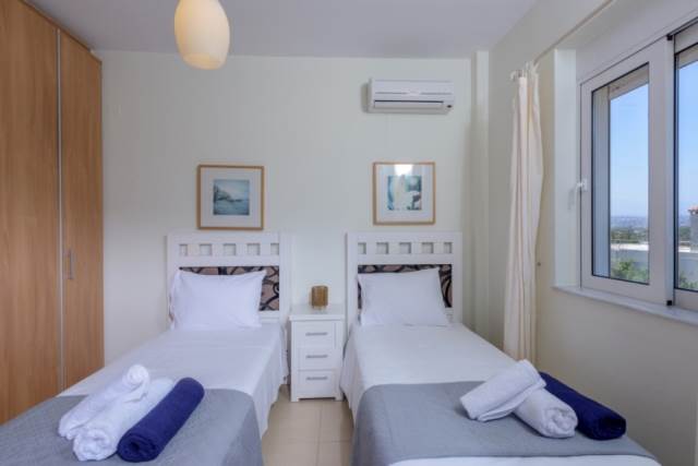 Στο δεύτερο επίπεδο -2 υπνοδωμάτια με ιδιωτικούς εξώστες για να απολαμβάνετε την υπέροχη θέα στην θάλασσα και στα βουνά και ανετο μπάνιο.
