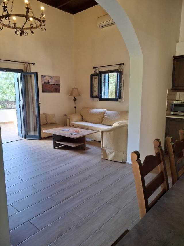 ΔΟΥΛΙΑΝΑ - ΑΠΟΚΟΡΩΝΑΣΣε μεγίστου φυσικού κάλλους και τα μεγιστα γραφική περιοχή,πωλείται σε συγκρότημα κατοικιών Μονοκατοικία εμβ.128 τμ ( πλέον υπογείου) ιδιαίτεραπροσεγμένης κατασκευής, με υπέροχα στοιχεία από πέτρα και ξύλο, και μεπλήρη εξοπλισμό και επίπλωση, εντός κοινοχρήστου οικοπέδου εμβ.1.378 τμ