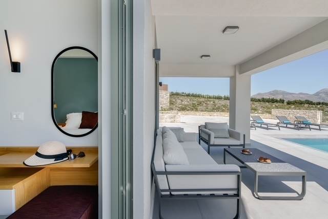 Εξωτερικά περιβάλλονται από ωραιότατο διακεκριμένο αυλειο χώρο, ο οποίος προσφέρει άκρα ιδιωτικοτητα με βοτανα - καλλωπιστικά φυτά - δέντρα, ιδιωτικές πισίνες για να απολαμβάνετε στο μέγιστο τις διακοπές σας.