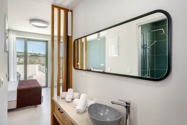 Ισόγειο εμβ.72,54 τμ με ιδιαίτερα άνετο και λειτουργικό ενιαίο χώρο -σαλόνι -τραπεζαρία- κουζίνα, 2 υπνοδωμάτια, 2 μπάνια, μεγάλες βεράντες με άμεση πρόσβαση στην ιδιωτική θερμαινόμενη πισίνα, υπέροχη θέα.Όροφο εμβ. 27,37 τμ με ένα ιδιαίτερα άνετο υπνοδωμάτιο -μπάνιο μεγάλα μπαλκόνια ,στεγασμένη βεράντα.