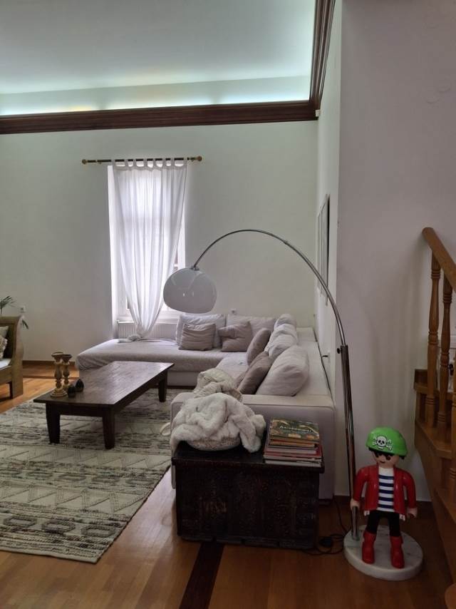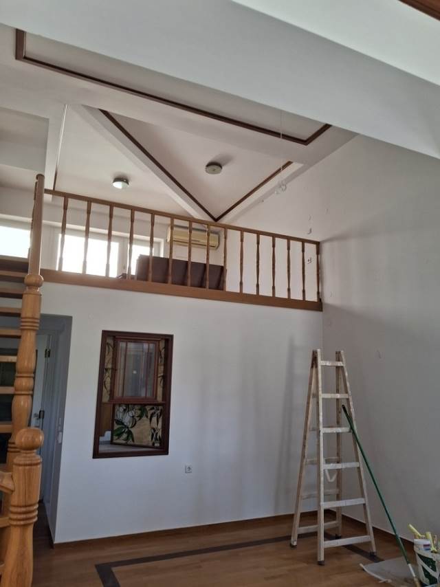 Το εν λόγω ακίνητο αναπτύσσεται σε δυο επίπεδα. Στο πρώτο επίπεδο εμβ. 154 τμ διαθέτει ιδιαίτερα άνετο ενιαίο χώρο (σαλόνι -τραπεζαρία -χώρο γραφείου ) χωριστή κουζίνα, έναν άνετο διάδρομο ο όποιος οδηγεί σε δυο υπνοδωμάτια στο κυρίως μπάνιο και σε ένα πλήρες wc .Στο δεύτερο επίπεδο ( Εσωτερικό αίθριο) εμβ.16 τμ στο οποίο η πρόσβαση επιτυγχάνεται μέσω ωραιότατης ξύλινης κλίμακος διαθέτει ένα ακόμα υπνοδωμάτιο με αποθήκη και άμεση πρόσβαση σε ιδιωτική ταράτσα.