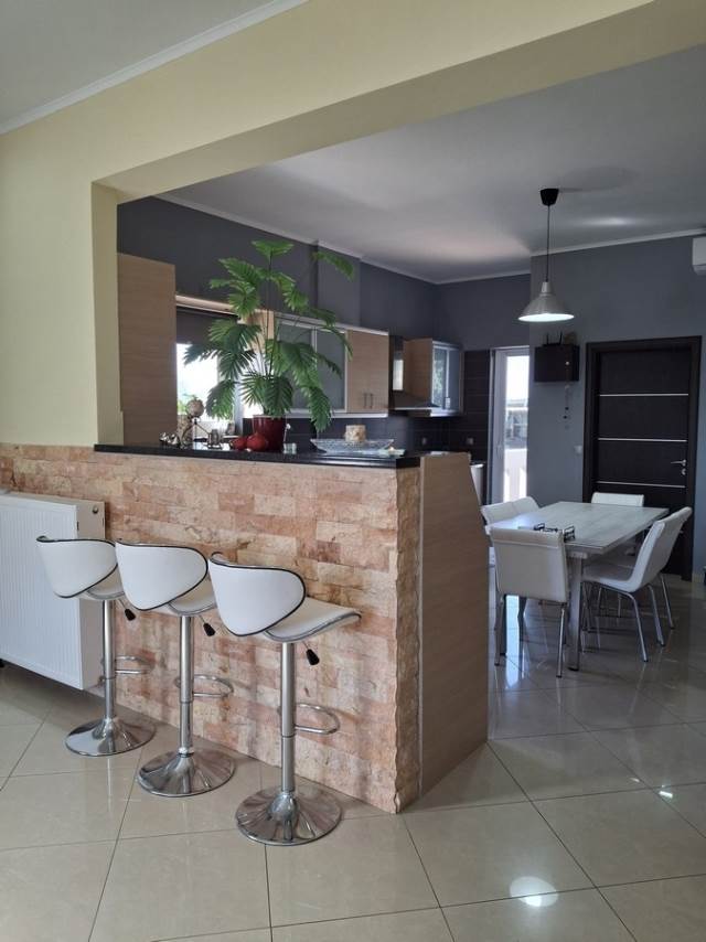 Η εν λόγω κατοικία αναπτύσσεται σε δυο επίπεδα και διαθέτειΣτο 1το επίπεδο την κυρία είσοδο, ιδιαίτερα όμορφο και ανετο ενιαίο χώρο (σαλόνι -τραπεζαρία -καθιστικό με τζάκι) τα μεγιστα λειτουργική κουζίνα με πάσο στην οποίαν μπορούν να γευματίσουν άνετα 6 -8 άτομα, επώνυμες εντοιχισμένες ηλεκτρικές συσκευές, κουζίνα με υγραέριο, αρκετά ντουλάπια για φύλαξη αντικειμένων, αποθηκευτικό χώρο, 1 άνετο μπάνιο, 1 υπνοδωμάτιο με εντοιχισμένη ντουλάπα, μεγάλα ανοίγματα για να απολαμβάνετε την όμορφη θέα και άμεση και πρόσβαση όλων των δωματίων σε βεράντες και στον αυλειο χώρο.