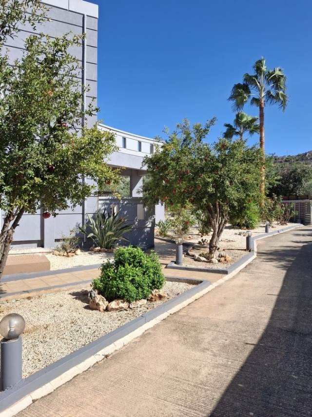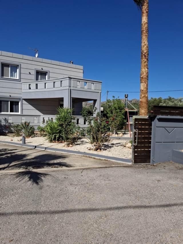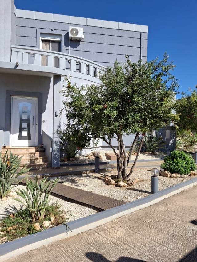 Εξωτερικά η κατοικία περιβάλλεται από μεγάλο αυλειο χώρο με δέντρα και λοιπά καλλωπιστικά φυτά, χώρο μπάρμπεκιου, παιδική χαρά και κολυμβητική δεξαμενή.