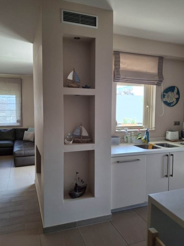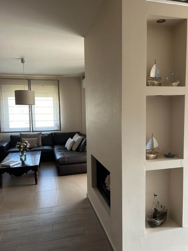 Στο πρώτο επίπεδο Άνετο ενιαίο χώρο (καθιστικό -τραπεζαρία) τα μεγιστα εργονομική κουζίνα με επώνυμες εντοιχισμένες ηλεκτρικές συσκευές, πάγκους με κοριεν και πολλά ντουλάπια, 2 υπνοδωμάτια με εντοιχισμένες ντουλάπες, εκ των οποίων το ένα θα μπορούσε να χρησιμοποιηθεί και ως γραφείο εάν ειναι επιθυμητό, μπάνιο, αποθηκευτικό χώρο,μεγάλους εξώστες και βεράντες με πέργκολες, όμορφη θέα στην γυρωθεν περιοχή.