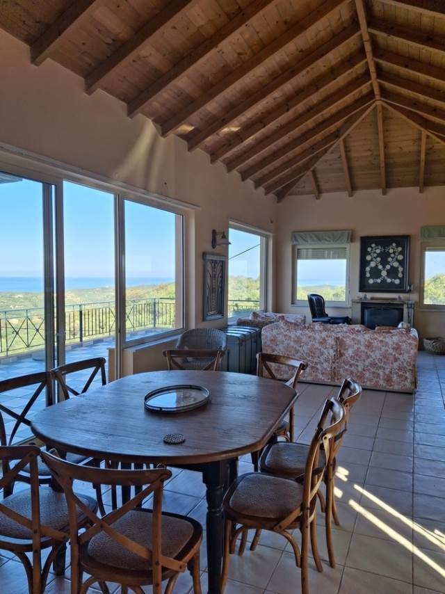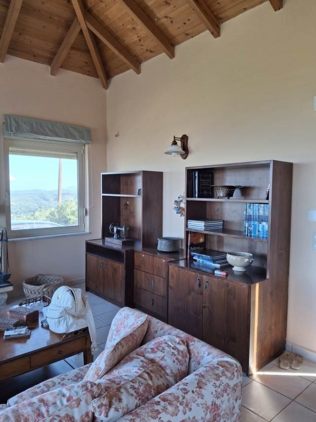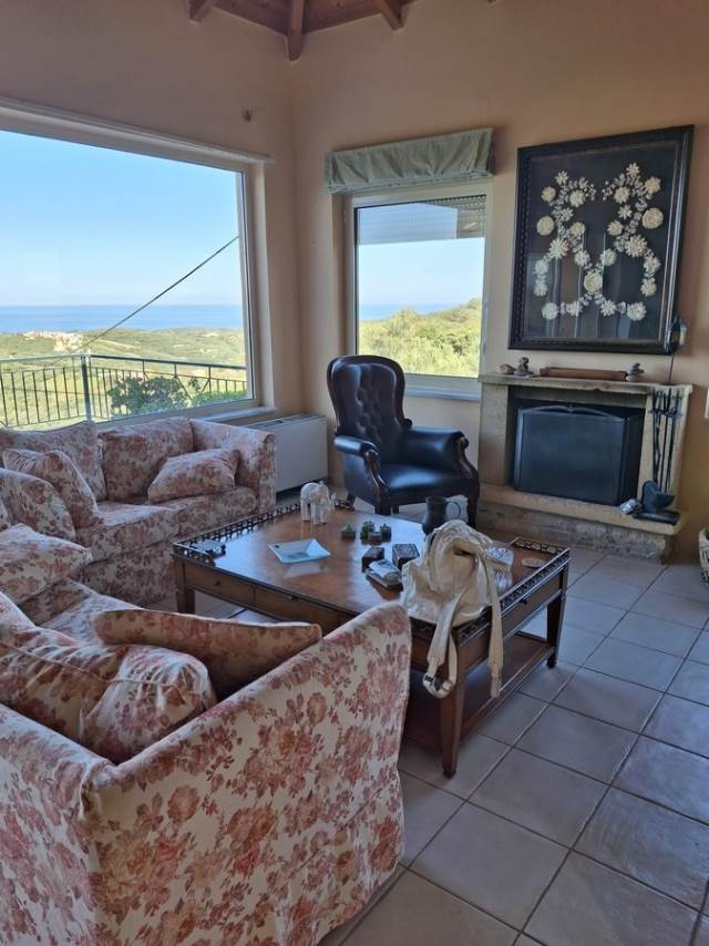 Η εν λόγω κατοικια αναπτύσσεται σε δυο επίπεδα των οποίων η επικοινωνια επιτυγχάνεται μέσω άνετης κλιμακος και διαθέτει: Στο δεύτερο επίπεδο το οποίο αποτελεί και την κυρία είσοδο της κατοικίας, άνετο ενιαίο χώρο με τζάκι και μεγάλα ανοίγματα τα οποία προσφέρουν άπλετο φυσικό φωτισμό, τραπεζαρία, κουζίνα με εντοιχισμένες ηλεκτρικές συσκευές, WC/ , ιδιαίτερα άνετους εξώστες με υπέροχη θέα στην θάλασσα και στην γυρωθεν περιοχή, για να απολαμβάνετε στιγμές χαλάρωσης ή συντροφικότητας.