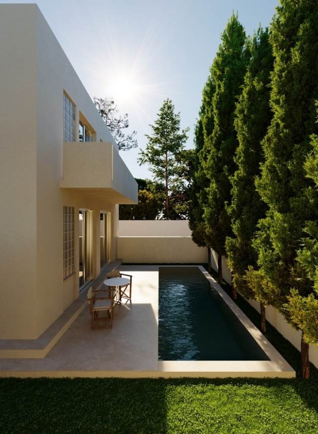 Η κατασκευή του εν λόγω συγκροτήματος κατοικιών, διακρίνεται για τη λιτή και μοντέρνα αισθητική με ενδιαφέροντα αρχιτεκτονικά στοιχεία όσον άφορα στις όψεις με χρωματισμούς σε γήινους τόνους, στα μεγάλα ανοίγματα, στην τοποθέτηση του συγκροτήματος η οποία εξασφαλίζει την άκρα ιδιωτικοτητα των κατοίκων προσφέροντας αυτονομία εισόδου,και προστατευόμενους ιδιωτικούς χώρους και πισίνες πράγματα τα οποία σε συνάρτηση με τις έντονα καλλιτεχνικές πινελιές του αρχιτέκτονα κοσμούν τη βίλα τόσο εσωτερικά όσο και εξωτερικά προσφέροντας ένα άκρως εκλεπτυσμένο αποτέλεσμα.