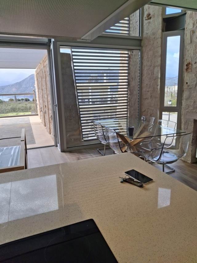 - Διάταξη -Η εν λόγω κατοικία αναπτύσσεται σε τρία επίπεδα των οποίων η επικοινωνία επιτυγχανεται μέσω ανετης κλιμακος -Το δεύτερο επίπεδο το οποίο αποτελεί και την κυρία είσοδο της κατοικίας φιλοξενεί έναν ενιαίο χώρο με μεγάλους υαλοπίνακες για να απολαμβάνετε την θέα , υπέροχη τραπεζαρία , υψηλής αισθητικής κουζίνα με επώνυμες ηλεκτρικές συσκευές, και ανετο εξώστη. -Το πρώτο επίπεδο φιλοξενεί 2 ιδιαίτερα άνετα υπνοδωμάτια ,δυο πολύ κομψά μπάνια με εντοιχισμένες συσκευές (πλυντήριο -στεγνωτήριο ) και διαθέτει άμεση πρόσβαση στον υπέροχο κήπο. -Το τρίτο επίπεδο φιλοξενεί ένα ακόμα υπνοδωμάτιο με ατομικό μπανιο και ανετο εξώστη με υπέροχη θέα στην θάλασσα.