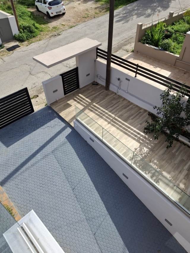 Διάταξη Η εν λόγω κατοικία αναπτύσσεται σε τρία επίπεδα των οποίων η επικοινωνία επιτυγχανεται μέσω ανετης κλιμακος -Το δεύτερο επίπεδο το οποίο αποτελεί και την κυρία είσοδο της κατοικίας φιλοξενεί έναν άκρως εντυπωσιακό ενιαίο χώρο με τζάκι , υψηλής αισθητικής κουζίνα με επώνυμες εντοιχισμένες ηλεκτρικές συσκευές , άνετο μπάνιο , στεγασμένες βεράντες για να απολαμβάνετε την όμορφη θέα καθ'ολη την διάρκεια του χρόνου και διαθέτει άμεση πρόσβαση στον όμορφο αυλειο χώρο