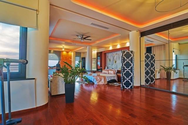 Στον όροφο εμβ.208,72 τμ σαλόνι - γραφείο - γυμναστήριο - 3 υπνοδωμάτια το ένα εξ αυτών master, 2 μπάνια (το ένα εξ αυτών με μπανιέρα - τζακούζι και καμπίνα σάουνας) τεράστιες βεράντας γύρωθεν.