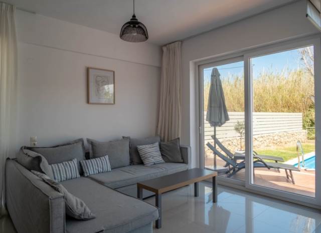 It is suitable for a permanent residence but also for exploitation through short-term lease. It is only 450 meters from the beach and only 3 kilometers from the center of Chania. Public and other amenities are within walking distance.