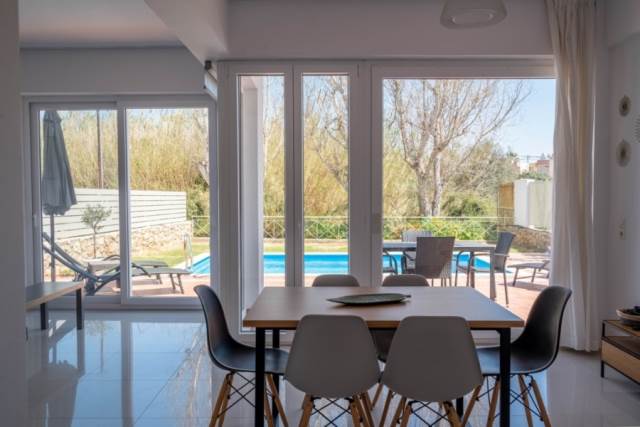 In addition, it has Energy-efficient aluminum frames with double glazing and screens Electrical appliances Monitoring system Air conditioning in all rooms Private swimming pool