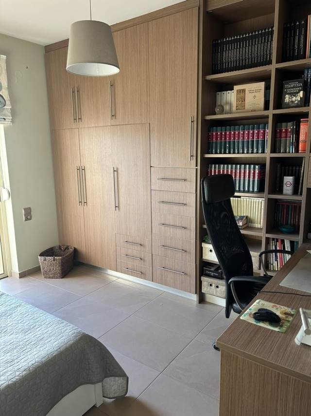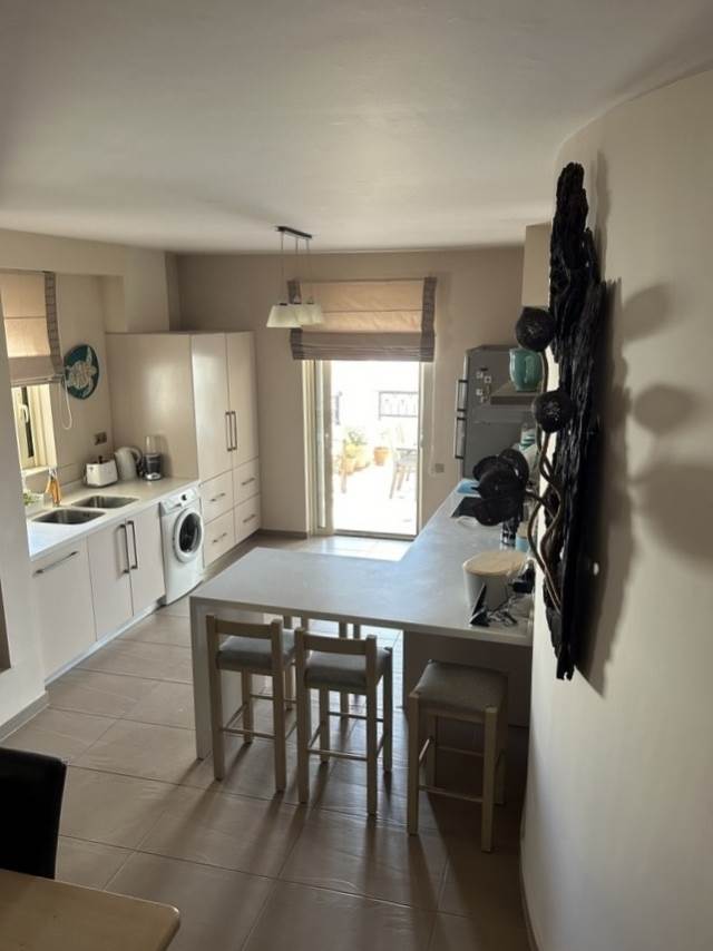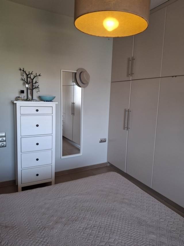 The residence is developed on 2 levels, whom communication is achieved through a staircase, and consists of: On the first level there is an open plan area with a living room and a dining room, a functional kitchen with branded build in electrical appliances, countertops made with Corian and many cabinets, 2 bedrooms with fitted wardrobes, one of them can be used as an office area, a bathroom, storage space, spacious verandas with pergolas, and nice view at the surrounding area.