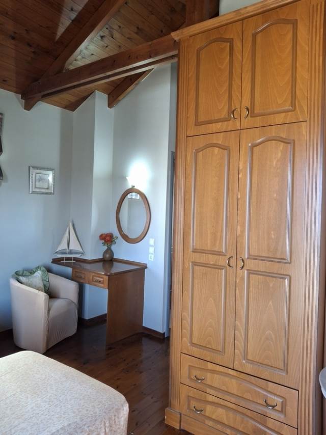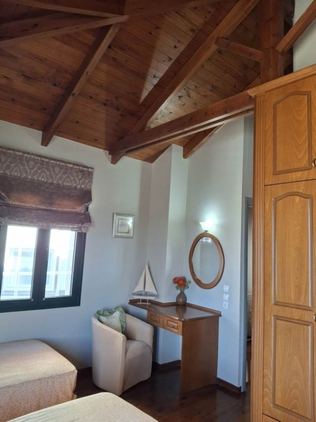The house is developed on three levels and consists of: On the ground floor there is a comfortable open plan area with a living room – dining room and a fireplace, a fully equipped kitchen, a bathroom, and direct access to a covered veranda with a captivatingl view of the sea and the surrounding area. On the 1st floor there is a spacious bedroom, a bathroom and it has direct access to the balcony to enjoy the wonderful view. In the attic, there is another bedroom, a bathroom, and direct access to the balcony.