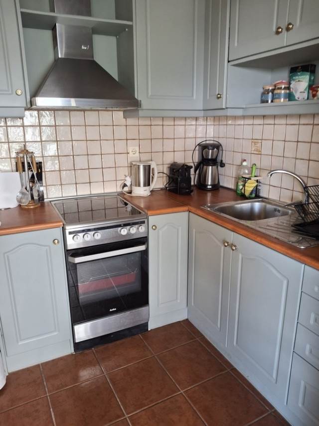 Communication between the levels is achieved through a spacious staircase. Natural lighting is abundant. The floors are tiled. The residence is decorated with branded furniture and accessories that harmonize perfectly with its aesthetics.
